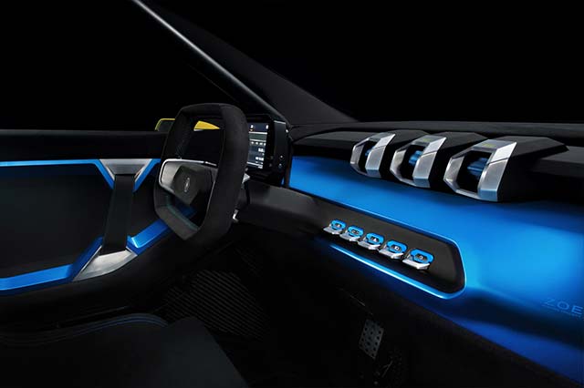 The overall design retains traditional Renault styling cues, plus elegant flourishes from higher-end high-performance models. The ZOE e-sport concept has extra-tinted windows. Its doors are opened by a simple tap on the ‘open’ zone incorporating tactile sensors.