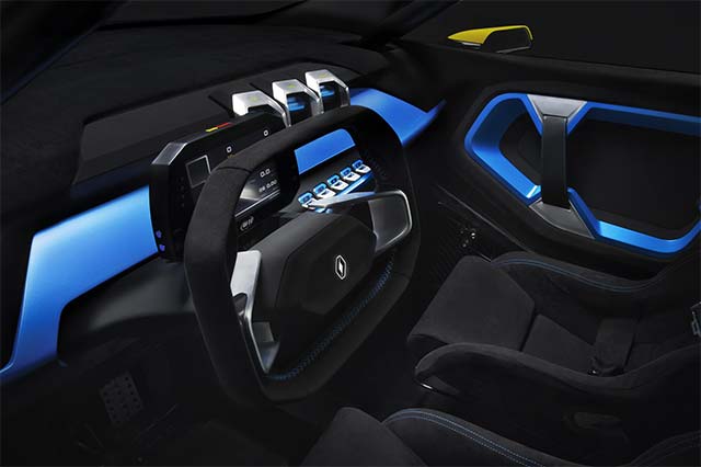 Inside, the ZOE e-sport concept has two Recaro bucket seats equipped with competition harnesses and a driving position that is ideal for track driving. A rectangular steering wheel gives drivers the broader field of vision enjoyed by Renault’s Formula E drivers.