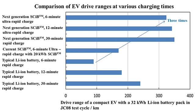 Toshiba will continue to develop higher energy density batteries that extend the range of EVs and support ultra-rapid recharging, and aims to commercialize the next-generation SCiB in fiscal year 2019.