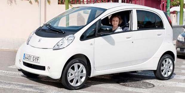 Queen Sofia of Spain has been testing an electric Peugeot iOn in Marivent Palace in Mallorca, where the Spanish Royal Family is spending their summer break.