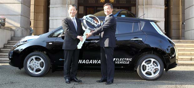 Nissan has delivered the first 10 units of its Nissan LEAF electric car in Japan to the Kanagawa Prefectural Government.