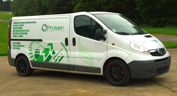 The latest application of Protean Electric’s in-wheel electric motor technology has made its US debut at the Management Briefing Seminar in Traverse City, Michigan, where Protean has demonstrated its wheel motors in a front-wheel-drive Vauxhall Vivaro diesel-electric hybrid light commercial vehicle.