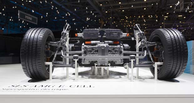 The drivetrain of the Mercedes SLS AMG E-CELL has been in development since 2010 as a result of the cooperation between Mercedes-AMG and Mercedes AMG High Performance Powertrains in Brixworth.