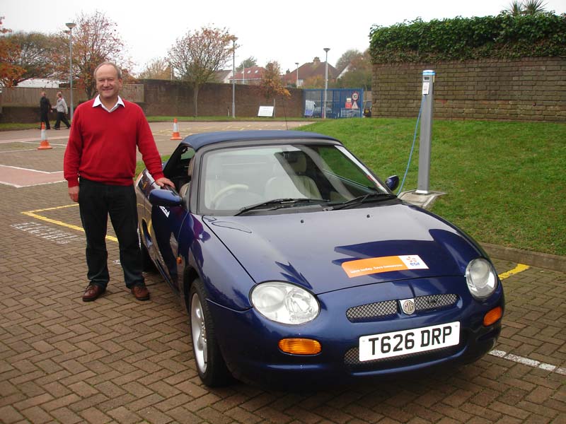 This story is about a very inspirational electric car conversion. It was done by a marketing guy proving that anyone can do it. Ok, ok, he’s got background in engineering but what I mean is that you can’t learn to build electric cars at a University. Meet Neil Hutchinson, he’s a marketing expert from Dorset, England and the man behind the Electric Power Classic Car club. A few years back he decided to convert his stunning blue MG sports car into an all-electric vehicle.