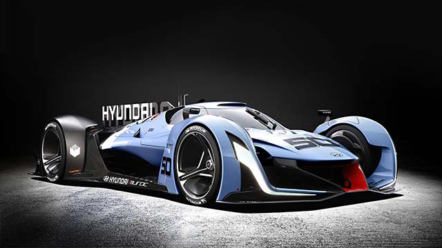 The Hyundai N 2025 Vision Gran Turismo concept draws inspiration aeronautics and speed. It looks like a jet fighter on wheels that blurs the line between air and asphalt. Hyundai Motor designed this car to appear like it is floating.