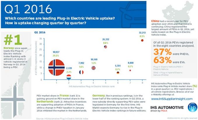 September 21, 2016 Electric Car Newsev sales, IHS Automotive, IHS Markit, Norway, plug-in sales, Plug-in Vehicle Sales