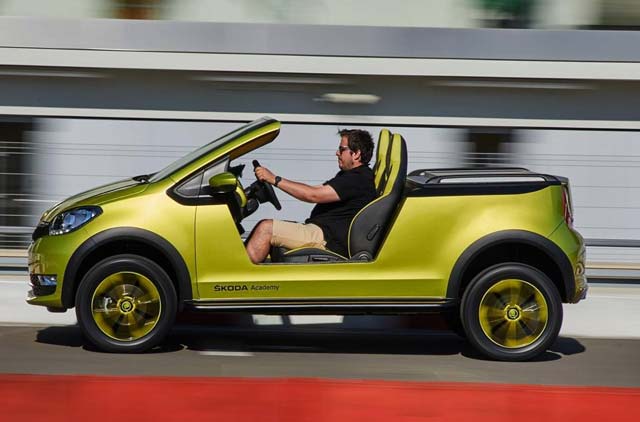 The SKODA ELEMENT, an all-electric powered buggy based on the SKODA CITIGO, stands as yet another testament to the skills of the young people at the SKODA Academy. The new student car is a roadworthy beach buggy featuring a solar panel, Smart TV, cool box and mobile disco.
