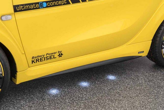 The concept vehicle of an exclusive city sports car with electric powertrain was built based on the current smart fortwo coupe. The transverse electric motor behind the rear axle gets its power supply from a lithium-ion battery pack installed in the vehicle floor. It has a capacity of 22 kWh and delivers a maximum range of 160 kilometers (100 miles) in the NEDC standard cycle.