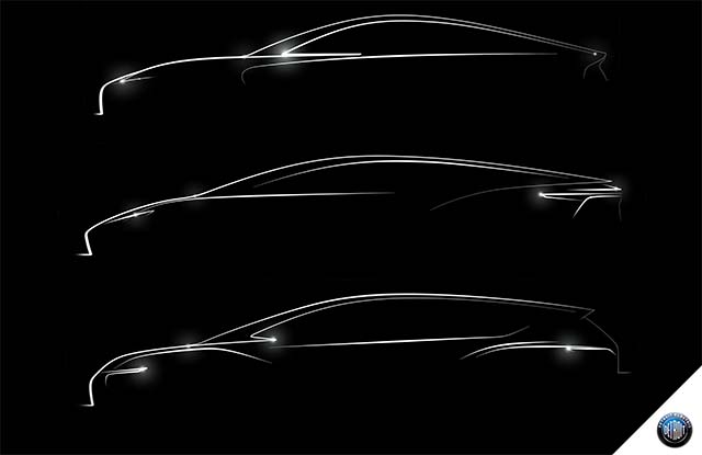 Styling images show side-profile silhouettes of three models that the Leamington Spa-based electric vehicle manufacturer will develop and introduce over the next three years: a sports car, a crossover and a large saloon.