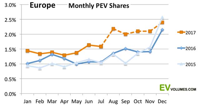 PHEV incentives are now as low as they go in the Netherlands and we will probably not see these December spikes for 2017. Still, our expectation is further increases in share and a Europe volume of 305 to 310,000 units when the year is over, which is 25,000 units higher than our previous forecast.