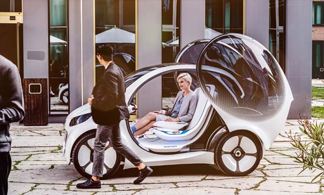 Individuality, maximum flexibility and efficiency for local public transport – that’s what the smart vision EQ fortwo stands for, thanks to its swarm intelligence and demand prediction. The self-driving concept vehicle picks up its passengers from their preferred location and is operated entirely by smartphone. Making the journey to pick up a “hire car” a thing of the past. The interconnected vehicles are always on the road. Utilisation increases and, at the same time, the amount of traffic and the number of parking spaces required in urban areas are reduced. It is the first passenger vehicle presented by the Daimler Group to dispense entirely with a steering wheel and pedals. The smart vision EQ fortwo is the also first vehicle to fully represent the individual competences of the CASE strategy – Connected, Autonomous, Shared & Services and Electric.