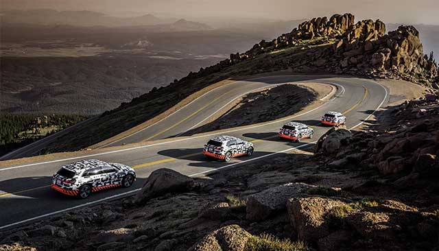 At 4,302 meters (14,115 ft), Pikes Peak looms high in the southern Rocky Mountains. Where Walter Röhrl won the world’s most famous hill climb in the Audi Sport quattro S1 back in 1987, it is the Audi e-tron prototype that is now causing a sensation with its recuperation system that is variable and thus the most efficient among all the competitors.