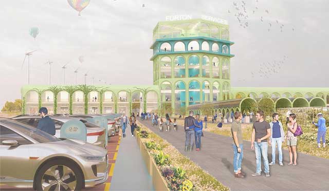 “As a designer, I am hugely excited by the opportunity this widespread adoption of electric cars presents. We have a unique chance for wholesale change of the facilities available to drivers as we reinvent usage and ‘filling’ patterns for our vehicles. The concepts we are presenting here with the team of architects show a vision of what is possible, what is needed and what it could look like.”