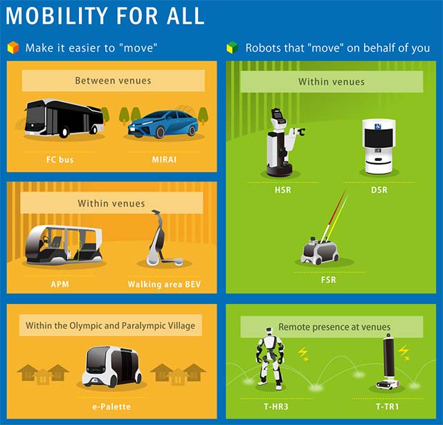 Through its full line-up of electrified vehicles to reduce environmental impact and mobility solutions that combine TPS with diverse mobility, Toyota will support smooth operations for Tokyo 2020, while also supporting the transport of those attending the Games, including staff, athletes, and visitors. Furthermore, through its robots, Toyota will provide support of event operations and unique experiences, exceeding the general notion of what mobility means for the Games. These activities will be pursued while Toyota continues to challenge itself to provide “Mobility for All” by offering various mobility solutions to make Tokyo 2020 a one-of-a-kind event.