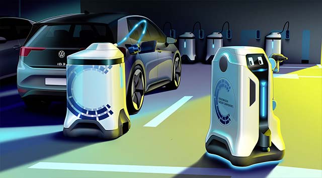 Volkswagen provides a glimpse into the future in which the search for charging stations for electric cars comes to an end. Volkswagen Group Components has developed a mobile charging robot that can charge electric vehicles autonomously, allowing any parking space to become a charging point.