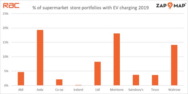 Asda and Morrisons have the greatest proportion of stores with charge points
