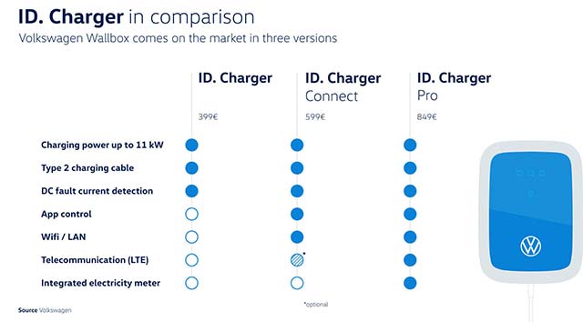 The first boxes were delivered to customers recently. At an introductory price of €399, the ID. Charger offers an excellent price-performance ratio. It was developed with the ID.3 and the ID. family in mind, but can also be used to charge all other electric cars with a Type 2 connector. The new Volkswagen wallbox is part of a complete ID.3 package designed by Volkswagen to make the switch to an electric car as simple and convenient as possible.