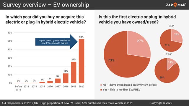 The survey results come at a time of record-breaking sales for the electric vehicle industry. Latest industry figures show that for the year-to-date 9.7% of all new car sales had a plug, compared to 3.2% in 2019, and 1.1% in 2015.