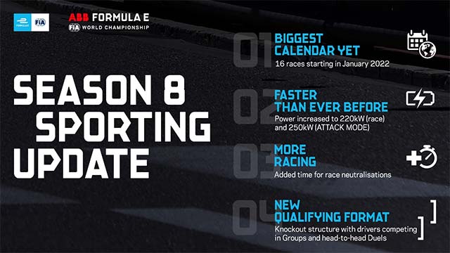 From Season 8, Formula E races can now have additional race time of up to 10 minutes added when incidents cause Safety Car or Full Course Yellow neutralisations during the 45-minute plus one lap race.