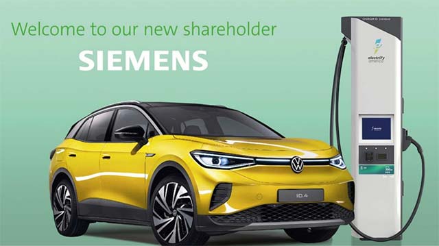 Volkswagen together with Siemens is investing $450 million, valuing Electrify America at $2.45 billion. Through its financing arm Siemens Financial Services (SFS), Siemens becomes a minority shareholder in Electrify America with a low triple-digit million USD investment and will hold a seat on the board.