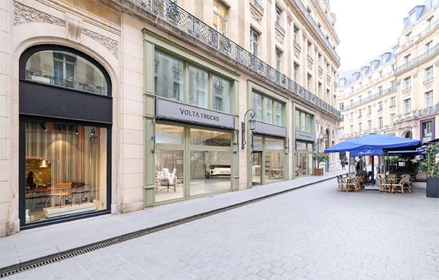 The ‘Volta Trucks Studio’ is on the historic Rue Edouard VII, off the Boulevard des Capucines in the 9th Arrondissement of Paris, linking the Madeleine and Opera districts. The central facility is perfectly located amongst offices, shops, homes, restaurants, hotels and theatres, and near where many of the company’s customers will live and work.