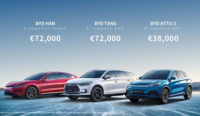 Chinese EV maker BYD revealed the pre-sale prices of its new European passenger car range. The world’s leading manufacturer of new energy vehicles and power batteries immediately introduces three full-electric passenger vehicles which will be delivered to Norway, Sweden, Denmark, the Netherlands, Belgium, Luxembourg and Germany.