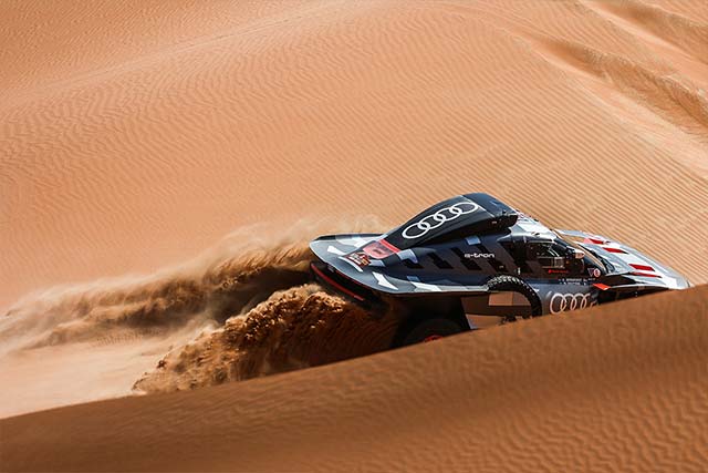 Team Audi Sport shaped the 2023 Dakar Rally with innovation and performance right up to the end despite various setbacks. The Audi RS Q e-tron with its electric drive concept scored a total of 14 podium results on 15 event days including the prologue.