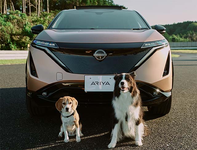 Available on the electrified Nissan X-Trail and all-electric Nissan Ariya SUVs, e-4ORCE improves ride comfort for everyone — including our four-legged friends — and gives drivers added confidence on challenging road surfaces.