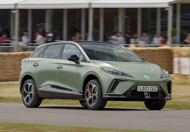 MG returned to the Goodwood Festival of Speed with a high voltage display of electric-powered performance. There were three global debuts in one day from MG including the much-anticipated first running of the Cyberster roadster, the brand new MG4 EV XPOWER and the striking EX4 concept car which was designed by MG’s London design team just for Goodwood.