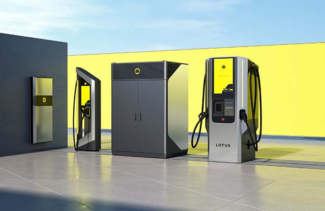Lotus has launched its own EV charging solutions including an ultra-fast 450 kW DC charger, power cabinet and a modular unit for charging up to four vehicles at once.