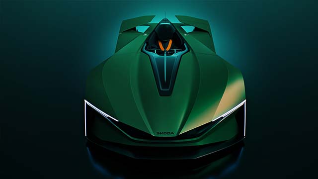 The virtual Skoda Vision Gran Turismo draws real-life inspiration from the Skoda 1100 OHC Spider from 1957, developed to compete in the 24 Hours of Le Mans. Led by Oliver Stefani, the Skoda Design team created a spectacular open-top single-seater, combining design elements from the legendary 1100 OHC with new features such as a split rear wing. Moreover, the Skoda Vision Gran Turismo incorporates characteristics of the new Modern Solid design language used for upcoming electric Skoda models. Among these are the T‑shaped headlights and the matte Explorer Green body colour. A total of four electric motors with a combined output of 800 kW and 1,020 Nm of torque along with all-wheel drive and active aerodynamics ensure exceptional performance under all track conditions.