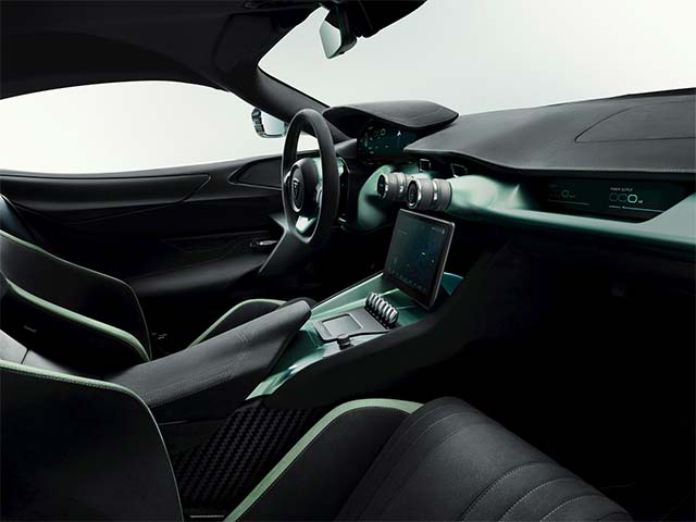 Launched in Nebula green, the Nevera R is a visual evolution of the Rimac story, translating the Time Attack’s Lightning Green highlights into a new color palette, both inside and out. The driver-focused, ultra-customizable interior of the Nevera has been updated with additional color and trim options. Painted carbon features, such as the main dashboard structure and center console trims, can match the exterior color or be personalized to the customer’s choice.