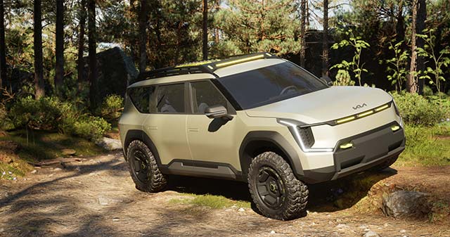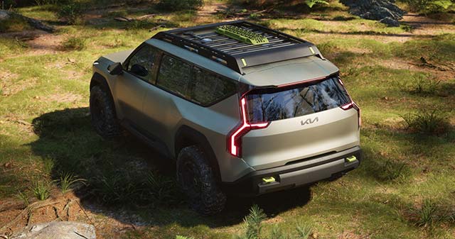 A custom roof rack can handle everything from standard luggage containers to bespoke roof-mounted tents that transform the EV9 ADVNTR into a machine perfect for getaways in the great outdoors. Rough and ready, the EV9 ADVNTR EV SUV is Kia’s latest expression of a lifestyle utility vehicle ready for tomorrow’s adventures.
