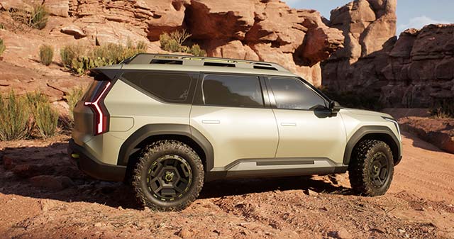 This truly unique all-electric 3-row SUV is designed to take life well beyond the beaten path. And conquer it. Built for serious fun, this 2025 EV9 EV SUV has been refined into the most adventurous SUV Kia has ever imagined. With custom front and rear facias for a unique and rugged look – and a reinforced rocker panels for increased capability and character – the EV9 ADVNTR EV SUV also features a 3” lift compared to the standard EV9 and a rugged tire and wheel combination to maximize the vehicle’s off-road capability.