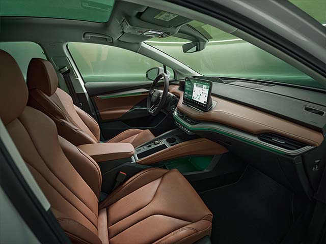 The new Skoda Enyaq is available with two battery sizes and three powertrain options, delivering outputs from 204 PS to 286 PS (150 kW to 210 kW). The top‑tier Enyaq 85x features an additional electric motor on the front axle, providing all‑wheel drive capability. With a range of up to 365 miles (587 kilometres), it is perfectly suited for long-distance journeys. The new Enyaq also supports rapid charging at DC fast-charging stations, achieving a charge from 10 to 80 per cent in just 28 minutes or less, thanks to a maximum charging rate of up to 175 kW.