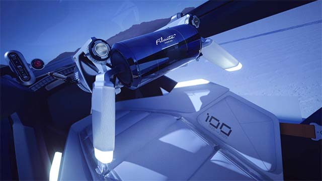 The steering wheel is the visible component of an innovative control architecture: its handles control the acceleration, braking and steering functions using fully electronic steer-by-wire and brake-by-wire technologies, discreetly integrated into a 3D printed structure made of Scalmolloy. This approach is inspired by aeronautical technologies, where controls need to be both ergonomic and rapidly accessible. At the centre of the steering wheel, a flexible panoramic screen wrapped around a cylinder provides a clear and immediate display of essential data, such as speed, range and driving parameters. Finally, the steering wheel is attached to the protective bubble of the cockpit, rising upwards when it is opened to make it easier for the driver to get in and out.
