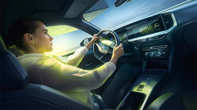Inside, the driver and co-driver sit on special Alcantara GSE Performance seats with integrated headrests, which optimally integrate the driver into the vehicle. The steering system, which was newly developed for the Mokka GSE, and steering wheel, flattened at the top and bottom, promise direct feedback while aluminium sports pedals await acceleration and braking commands.