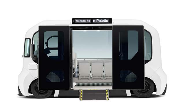 e-Palette is capable of supporting an automated driving system that conforms to Level 2 automated driving specifications. Toyota will continue to implement improved functions with the aim of launching vehicles equipped with Level 4 automated driving systems to the market during fiscal year 2027.