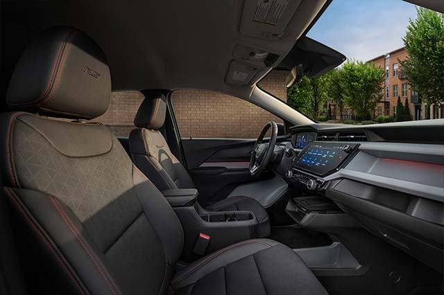 For the first time, the 2027 Chevy Bolt is available in Chevy’s sporty RS trim, with unique grille badging, high-gloss black wheels and roof rails. Bolt RS is available in an exclusive color combination of Atomic Yellow exterior with red interior accent stitching.