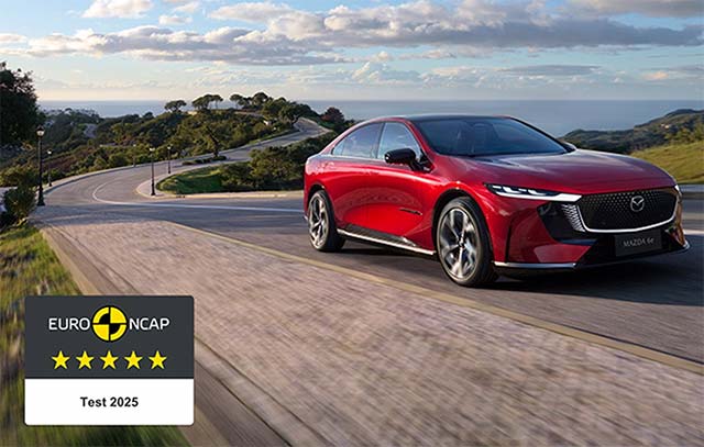 The all-new Mazda6e has achieved a maximum five-star rating by Euro NCAP in its recent series of tests. In the two categories of Adult Occupant and Child Occupant protection, Mazda’s latest all-electric model scored an excellent 93%.