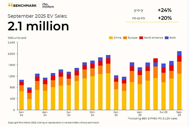October 15, 2025 Electric Car NewsElectric Car Sales, Electric Vehicle Sales, ev sales, plug-in car sales, plug-in sales, Plug-in Vehicle Sales, Rho Motion