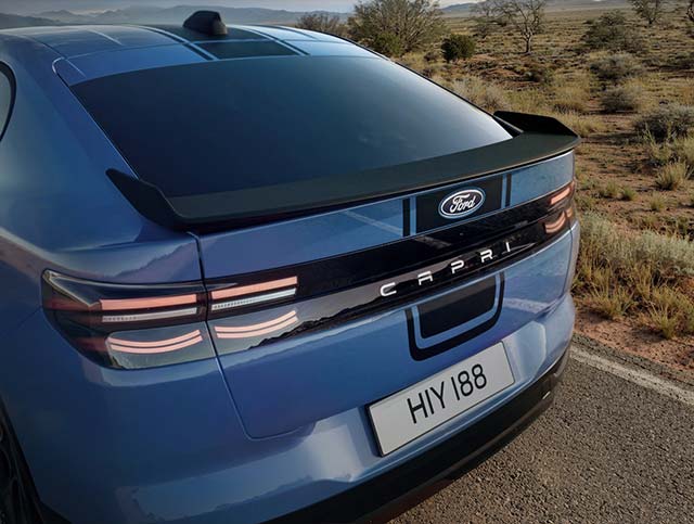 The Capri Collection draws heavily on the legacy of classic Capri models, reinterpreting iconic design cues for the electric era. The standout Tribute Blue exterior pays homage to historic racing liveries, while more aggressive styling elements—including black-finished front and rear valances, side skirts, and a rear spoiler—give the car a sharper, sportier stance.