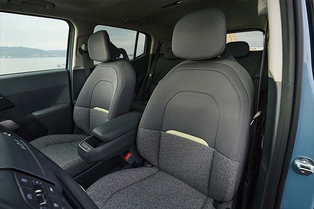 Despite its compact footprint, the EV2 delivers impressive practicality. A sliding and reclining seat system in the four-seat configuration enhances rear legroom and allows boot capacity to exceed 400 litres when needed—figures that rival some C-segment competitors.