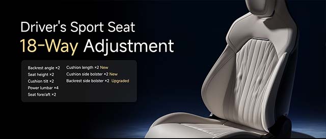 Seat comfort is significantly improved with heated and ventilated front seats, an 18-way adjustable driver’s seat, and an optional zero-gravity passenger seat with massage functionality. Rear passengers benefit from improved cushioning, recline angles, and enhanced headrests.