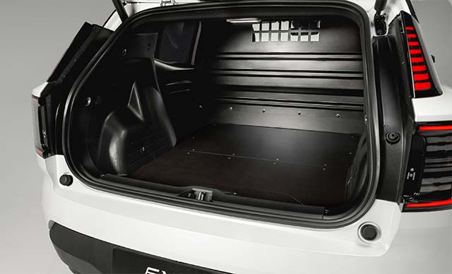 The EX30 Cargo replaces the rear seats with a flat load floor and adds an access panel to the lower compartment, unlocking up to 1,000 litres of cargo space and a payload capacity of 390 kg. A robust bulkhead separates the cabin from the cargo area, while redesigned side panels and rear doors increase usability and storage efficiency.