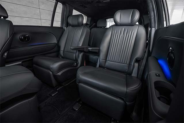 Inside, the cabin adopts a fully black theme with refined materials and comfort-focused features across all three rows. The six-passenger layout emphasizes relaxation and space, with first- and second-row relaxation seats offering power recline and ventilation.