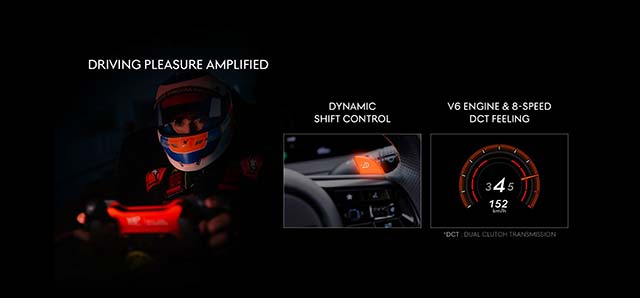 By simulating the behavior of a high-performance V6 engine paired with an 8-speed dual-clutch transmission, VGS delivers realistic shift patterns, sound, and feedback. The system adapts to each driving mode—offering smooth transitions in comfort settings and sharper, more aggressive shifts in Sprint Mode.