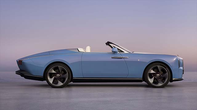 Project Nightingale channels the elegance of the Streamline Moderne era while embracing a distinctly contemporary identity. Its proportions are dramatic: at 5.76 meters long, it matches the length of the flagship Rolls-Royce Phantom, yet it is configured as a sleek two-seat convertible.