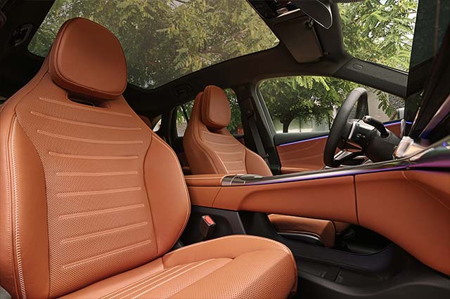 The all-new seamless MBUX HYPERSCREEN greets the customers as they step in the electric GLC. At 99.3 centimetres (39.1 inches), it is the largest screen in a Mercedes‑Benz, creating an immersive spatial experience with digital elegance. The warm and inviting ambient light, combined with the starry SKY CONTROL panoramic roof featuring switchable segments, elevates the unique Mercedes‑Benz ‘Welcome Home’ feeling to a new level.