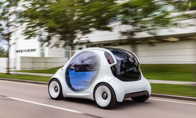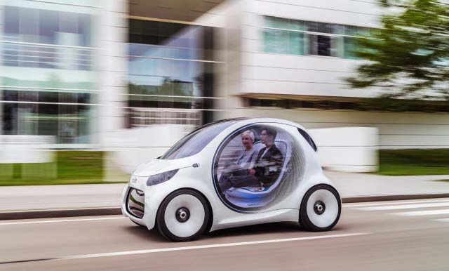 The smart vision EQ fortwo provides a new vision of urban mobility and individualised, highly flexible, totally efficient local public transport: the autonomous concept vehicle picks up its passengers directly from their chosen location.